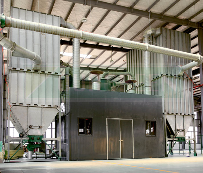 南京歐格公司設計制造的中央吸塵裝置由控制室、風機、輸送管和料倉組成,自動化程度高。粉塵收集系統,包括加工車間粉塵收集管道、粉塵收集料倉和中央吸塵裝置,加工車間粉塵收集管道出口接入所述粉塵收集料倉的入口,所述粉塵收集料倉底端設有錐形集料斗,錐形集料斗下端設置排料閥;中央吸塵裝置固定于控制機房的頂部,并與粉塵收集料倉連接;中央吸塵裝置以及排料閥連接PLC控制系統。本裝置將擠塑板拉毛過程、擠塑板縱切切邊粉碎過程產生的粉塵通過粉塵收集管道收集后送入粉塵收集料倉,整個過程由旋風除塵器提供吸塵動力,有效吸收并集中擠塑板加工過程中產生的粉塵,實現無塵操作的過程,提高擠塑板生產、加工器械的運行穩定性,保護工人的身體健康。