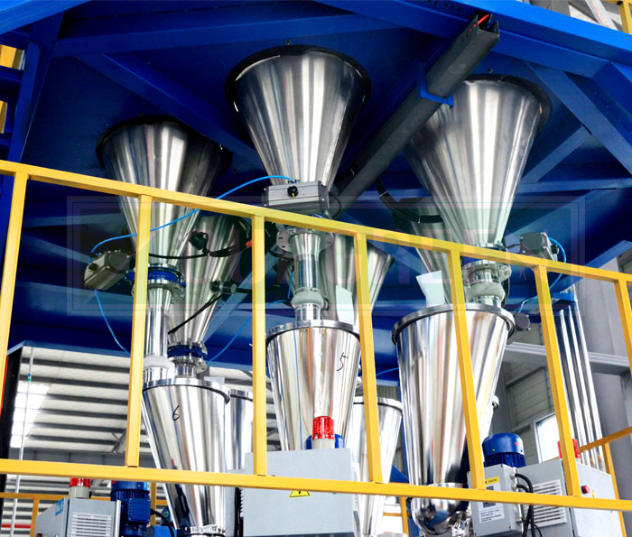 南京歐格的矢重式自動上料系統采用特制的攪拌上料系統,以確保各種原料混合的均勻。自動化控制保證系統運行穩定,按照生產配方將各組分別加入到料倉中,經真空上料機后充分攪拌,后將攪拌均勻的物料加入到擠出機的料斗中。該產品由公司優化設計,使其能夠適應各種型號的擠出機組。